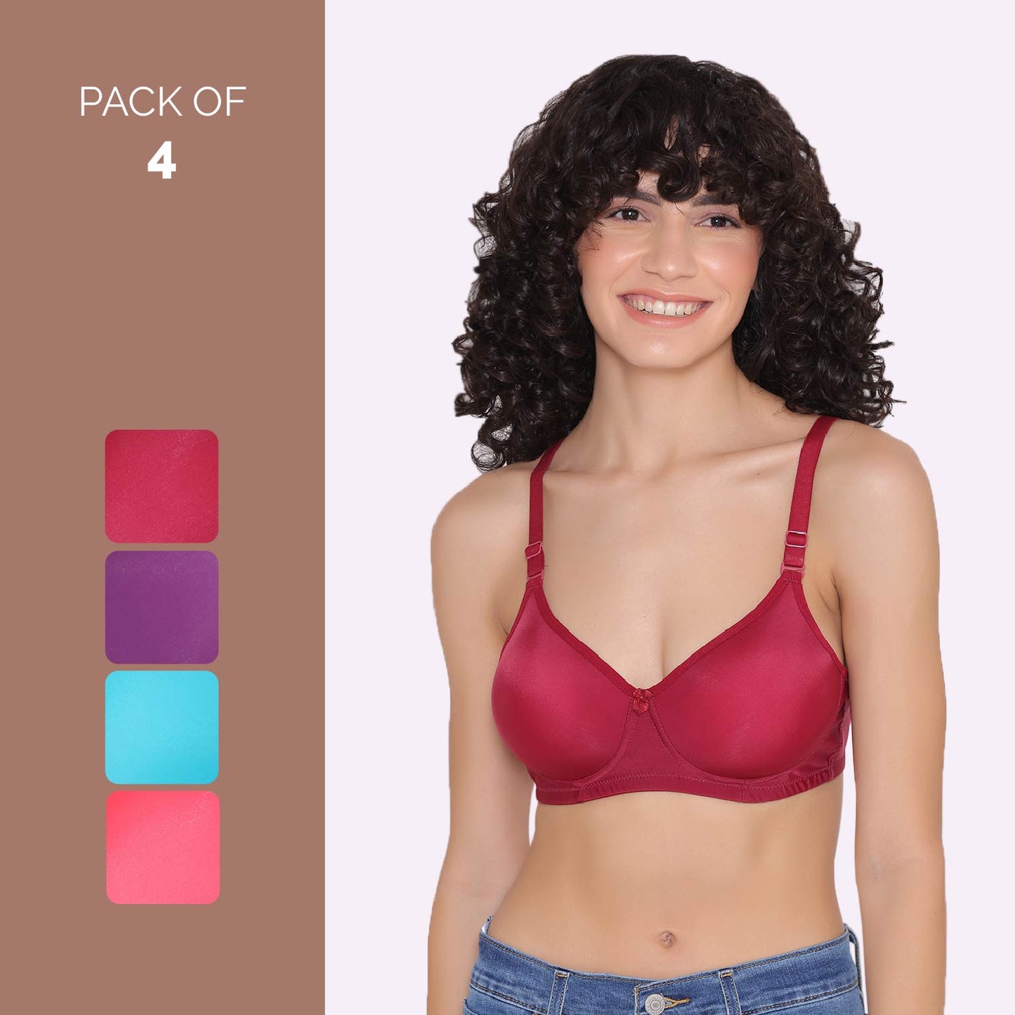 Full Coverage T-Shirt Bra Lightly Padded-LILY (Combo of 4)
