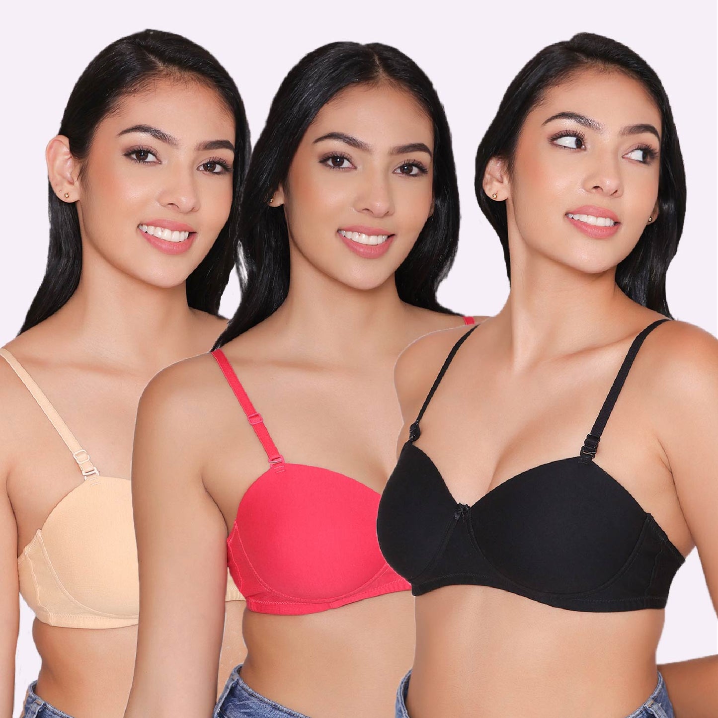 - Combo of 3 || Non wired|| Light Padded || T-Shirt Bra || Seamless Bra
