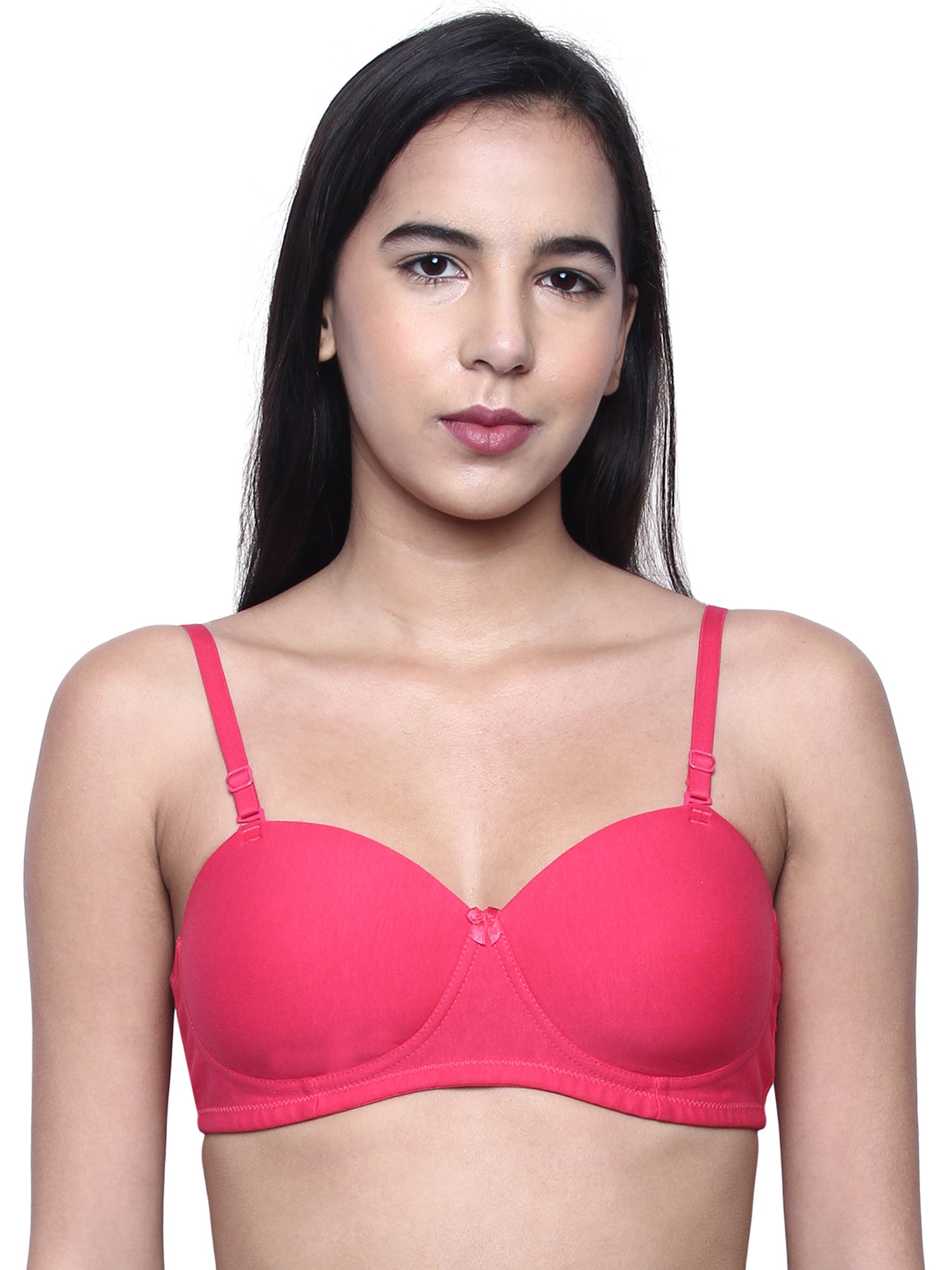 The Soft padded wrinkle-free Demi cups provide you a smooth look under all clothing. Its Seamless design makes your bra invisible under T-shirts. Bra straps are adjustable, and you can even style them in different ways like cross back, halter neck. The straps are detachable, and you can also style them with transparent straps.